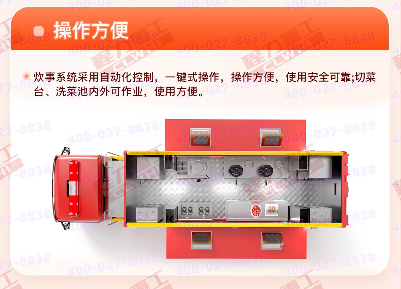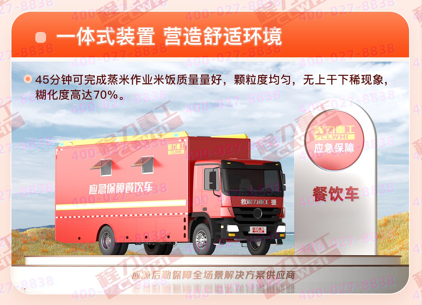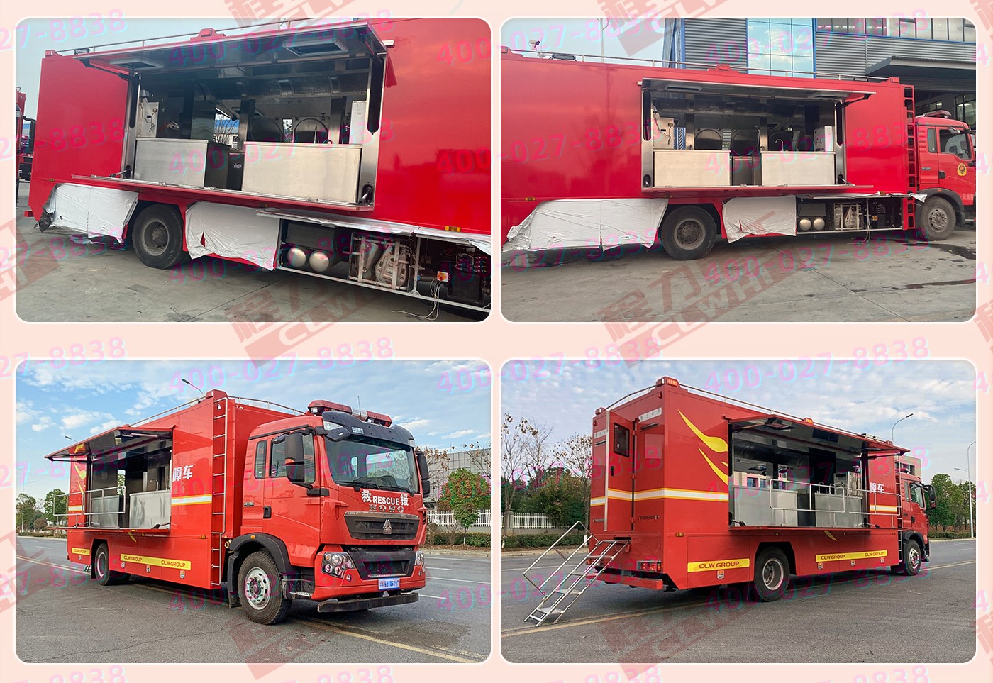 重汽HOWO炊事車:中國重型汽車集團(tuán)原廠重汽豪沃6*6越野底盤,三軸5200+1400mm軸距,9726ML排量,280馬力。